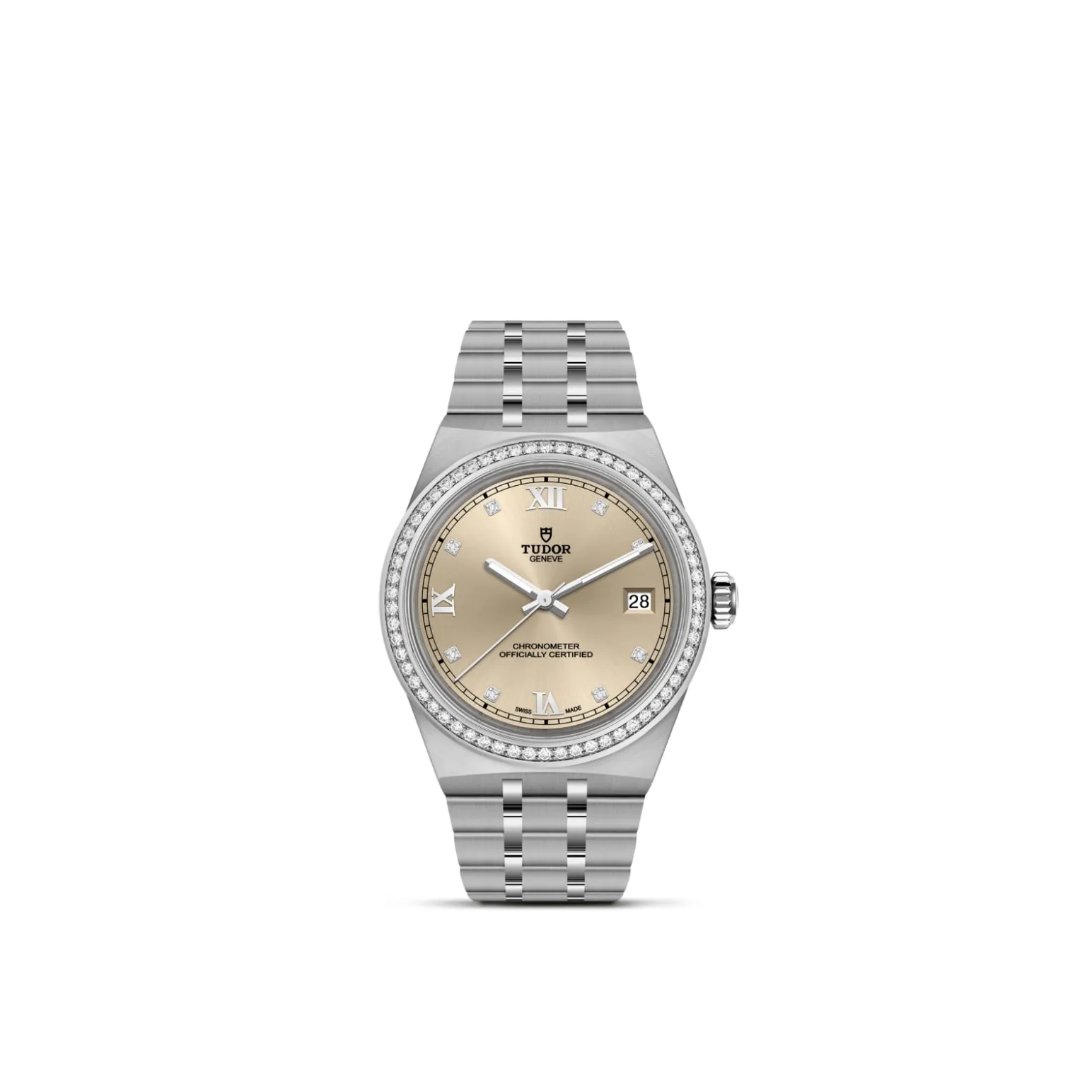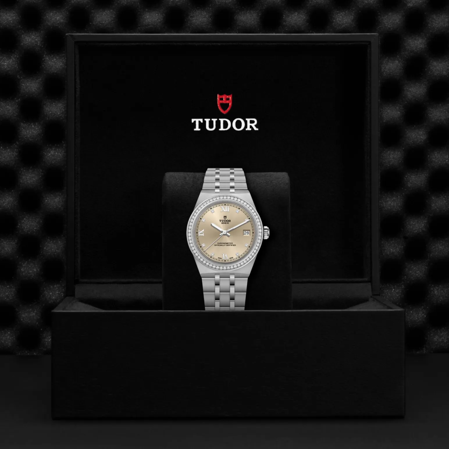 Il nome Royal fu usato per la prima volta da TUDOR negli anni ’50 per sottolineare la qualità superiore dei suoi orologi. La linea TUDOR Royal rientra nella tradizione del Marchio di proporre segnatempo dallo stile sportivo ed elegante, con movimenti automatici e bracciali integrati, ad un prezzo accessibile ma che non scendano a compromessi sulla qualità. Orologi dalle prestazioni tecniche all’avanguardia e l’estetica raffinata, al crocevia tra i modelli classici e quelli sportivi, i segnatempo di questa linea sono disponibili in acciaio o acciaio e oro e proposti in quattro misure con una vasta selezione di quadranti.