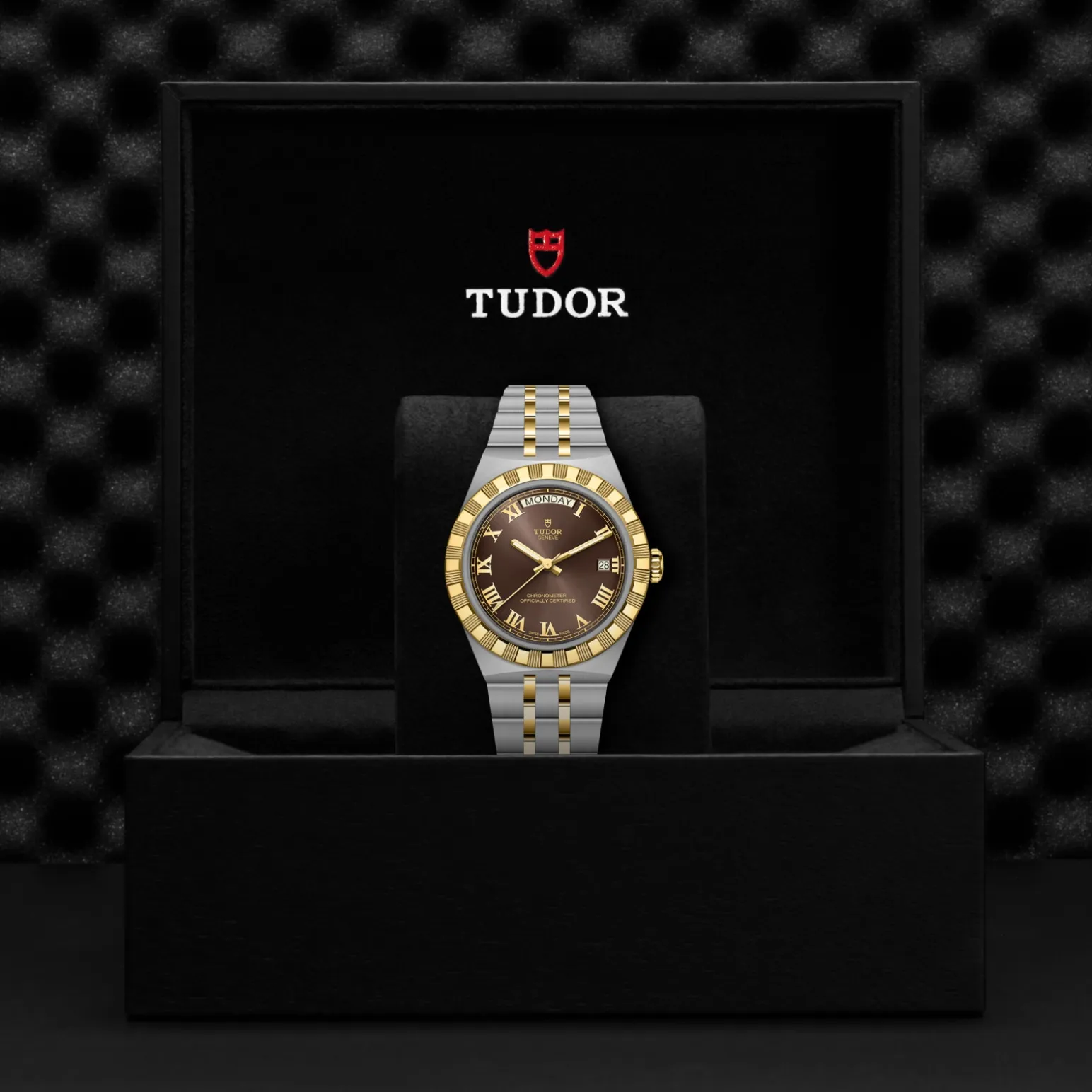 Il nome Royal fu usato per la prima volta da TUDOR negli anni ’50 per sottolineare la qualità superiore dei suoi orologi. La linea TUDOR Royal rientra nella tradizione del Marchio di proporre segnatempo dallo stile sportivo ed elegante, con movimenti automatici e bracciali integrati, ad un prezzo accessibile ma che non scendano a compromessi sulla qualità. Orologi dalle prestazioni tecniche all’avanguardia e l’estetica raffinata, al crocevia tra i modelli classici e quelli sportivi, i segnatempo di questa linea sono disponibili in acciaio o acciaio e oro e proposti in quattro misure con una vasta selezione di quadranti.