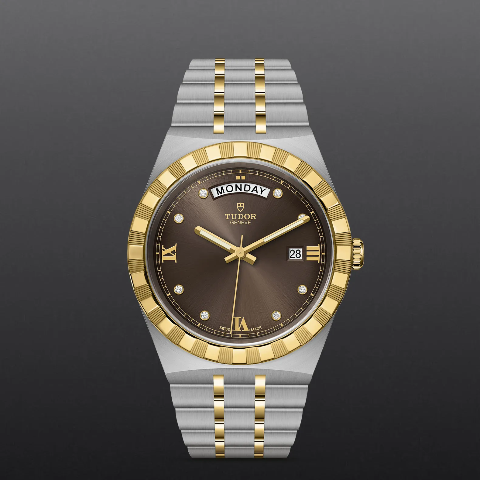 Il nome Royal fu usato per la prima volta da TUDOR negli anni ’50 per sottolineare la qualità superiore dei suoi orologi. La linea TUDOR Royal rientra nella tradizione del Marchio di proporre segnatempo dallo stile sportivo ed elegante, con movimenti automatici e bracciali integrati, ad un prezzo accessibile ma che non scendano a compromessi sulla qualità. Orologi dalle prestazioni tecniche all’avanguardia e l’estetica raffinata, al crocevia tra i modelli classici e quelli sportivi, i segnatempo di questa linea sono disponibili in acciaio o acciaio e oro e proposti in quattro misure con una vasta selezione di quadranti.
