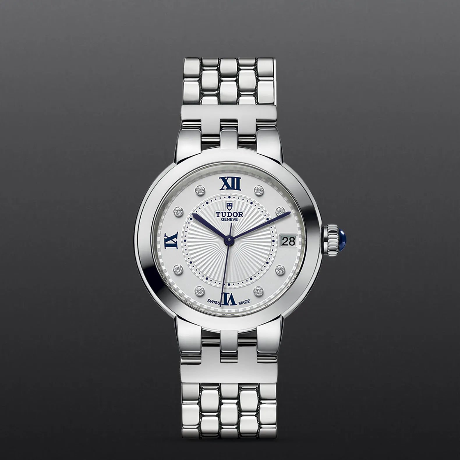 La linea Clair de Rose viene rivisitata all’insegna di uno spirito classico, raffinato e senza tempo che rievoca gli storici codici estetici del Marchio. Disponibile unicamente in acciaio, in sei configurazioni e tre formati, con cassa da 26 mm, 30 mm o 34 mm di diametro, la linea Clair de Rose è caratterizzata da quadranti opalini con eleganti decorazioni in rilievo ed impreziositi dagli indici in numeri romani laccati blu o in diamante.
