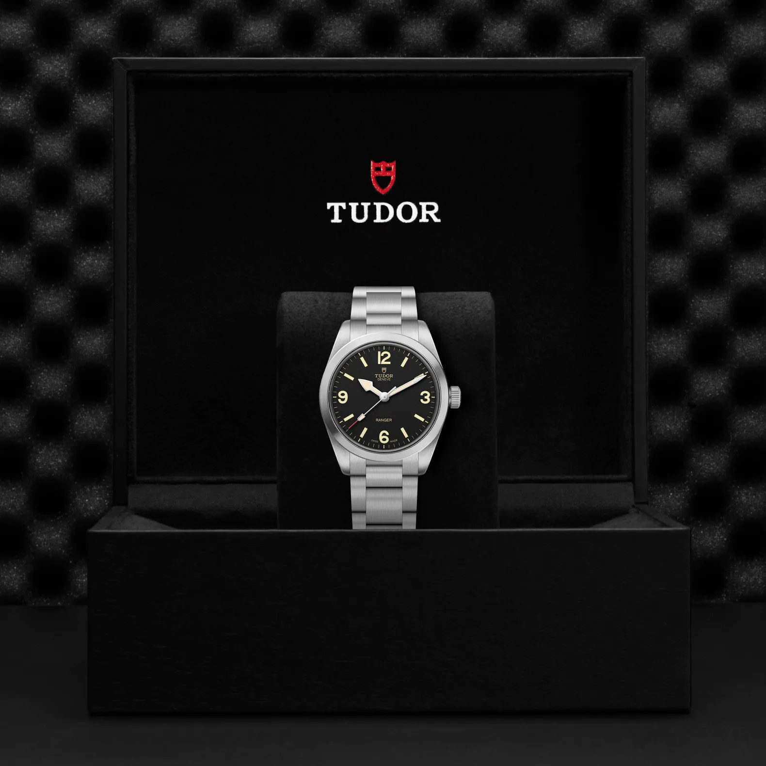 Il modello Ranger è stato lanciato per celebrare il 70° anniversario della British North Greenland Expedition. È un orologio?strumento che rende omaggio allo spirito audace di questa avventura, dotato del Calibro di Manifattura MT5402, di una cassa di 39 mm e di una chiusura con sistema di regolazione rapida. Il modello Ranger è in continuità con gli standard estetici consolidatisi nel corso degli anni per questa famiglia di orologi – da cui riprende in particolare il quadrante con numeri arabi a ore 3, 6, 9 e 12 –, ma incorpora al contempo elementi tecnici all’avanguardia. Inoltre, porta avanti, all’interno della collezione TUDOR, la tradizione dell’orologio da spedizione.