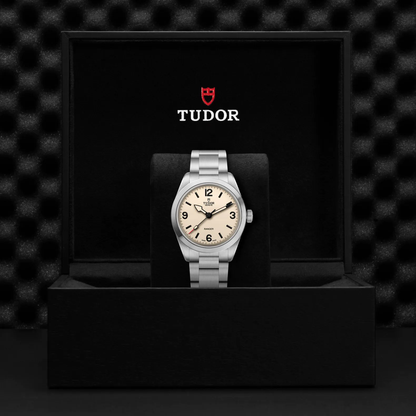 Il modello Ranger è stato lanciato per celebrare il 70° anniversario della British North Greenland Expedition. È un orologio?strumento che rende omaggio allo spirito audace di questa avventura, dotato del Calibro di Manifattura MT5402, di una cassa di 39 mm e di una chiusura con sistema di regolazione rapida. Il modello Ranger è in continuità con gli standard estetici consolidatisi nel corso degli anni per questa famiglia di orologi – da cui riprende in particolare il quadrante con numeri arabi a ore 3, 6, 9 e 12 –, ma incorpora al contempo elementi tecnici all’avanguardia. Inoltre, porta avanti, all’interno della collezione TUDOR, la tradizione dell’orologio da spedizione.