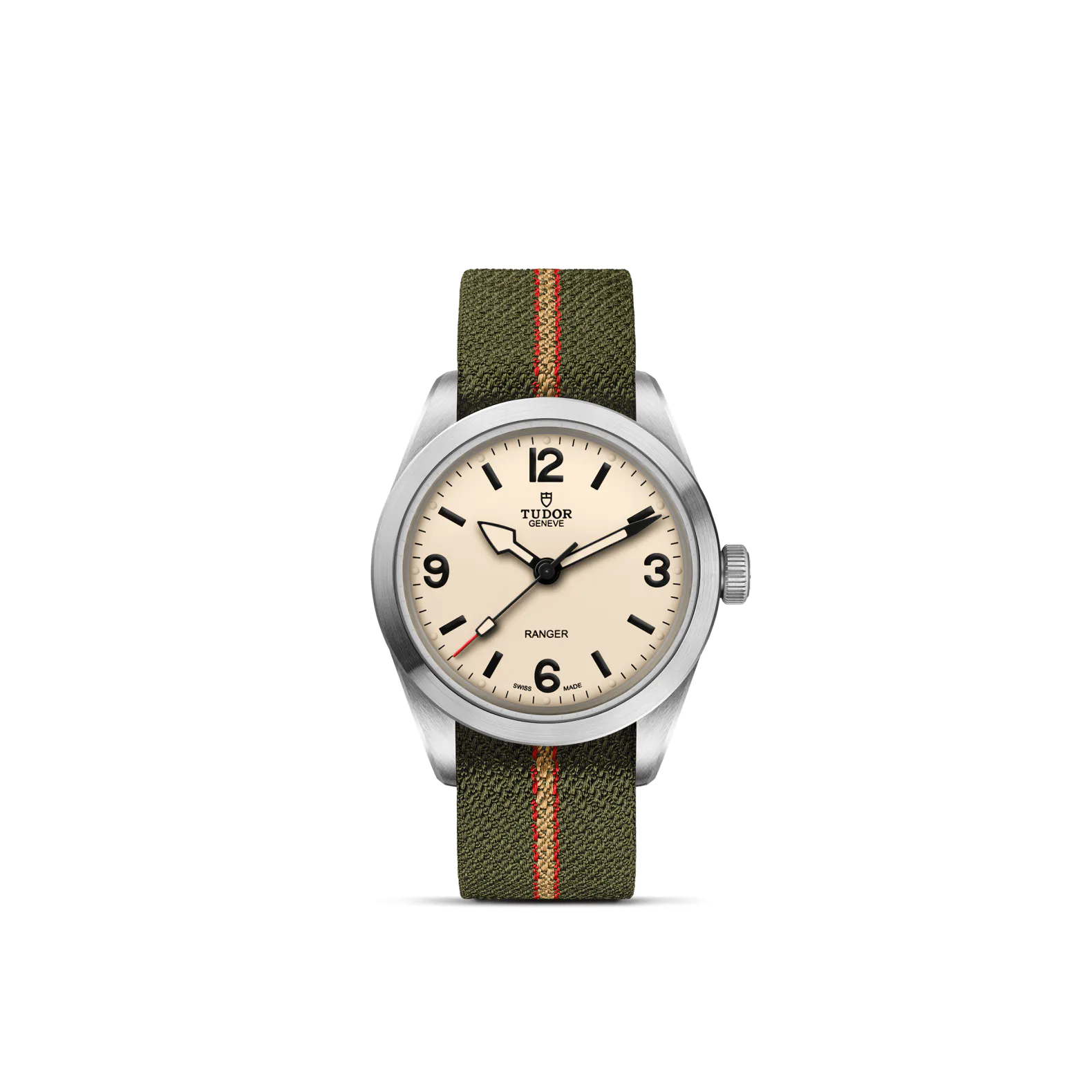 Il modello Ranger è stato lanciato per celebrare il 70° anniversario della British North Greenland Expedition. È un orologio?strumento che rende omaggio allo spirito audace di questa avventura, dotato del Calibro di Manifattura MT5402, di una cassa di 39 mm e di una chiusura con sistema di regolazione rapida. Il modello Ranger è in continuità con gli standard estetici consolidatisi nel corso degli anni per questa famiglia di orologi – da cui riprende in particolare il quadrante con numeri arabi a ore 3, 6, 9 e 12 –, ma incorpora al contempo elementi tecnici all’avanguardia. Inoltre, porta avanti, all’interno della collezione TUDOR, la tradizione dell’orologio da spedizione.